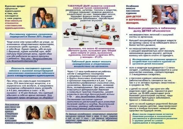 Курение замедляет физическое и психическое развитие, организму в эти годы нужно много сил, чтобы справиться со всеми нагрузками: как физическими, так и умственными. Действие никотина, в первую очередь, сказывается на нервной и сердечно-сосудистой системе. Курение отрицательно влияет на скорость мыслительных процессов, а значит, на качество обучения. Число неуспевающих возрастает в тех группах, где больше курящих. У курящих ребят хуже память, понижен слух, они отличаются нервозностью и раздражительностью.